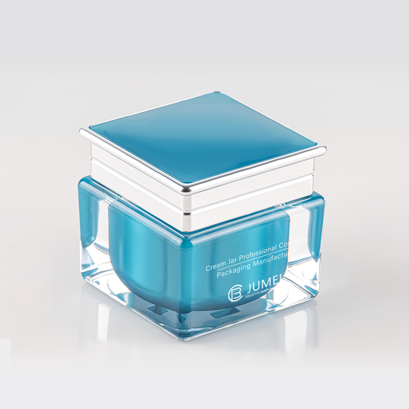 Custom Logo Rectangular Elegant Cosmetic Container Peacock Blue Acrylic Jar for Cream